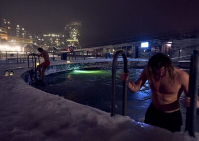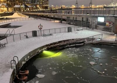 Vi er en vinterbadeklub for voksne over 18 år og holder til i Havnebadet på Bassin 7. Placeret centralt midt i byen danner klubben en perfekt kulisse om vinterbadning, hvor man samtidig mærker byens puls. Medlemsskab koster 600,- kr. for en sæson, som løber fra 1. oktober til 31. maj.
