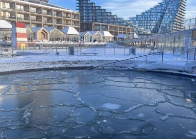 Her holder Aarhus Kommune Havnebadet offentligt åbent med livreddere og adgang til bassin, omklædning og saunaer. Læs mere her >>